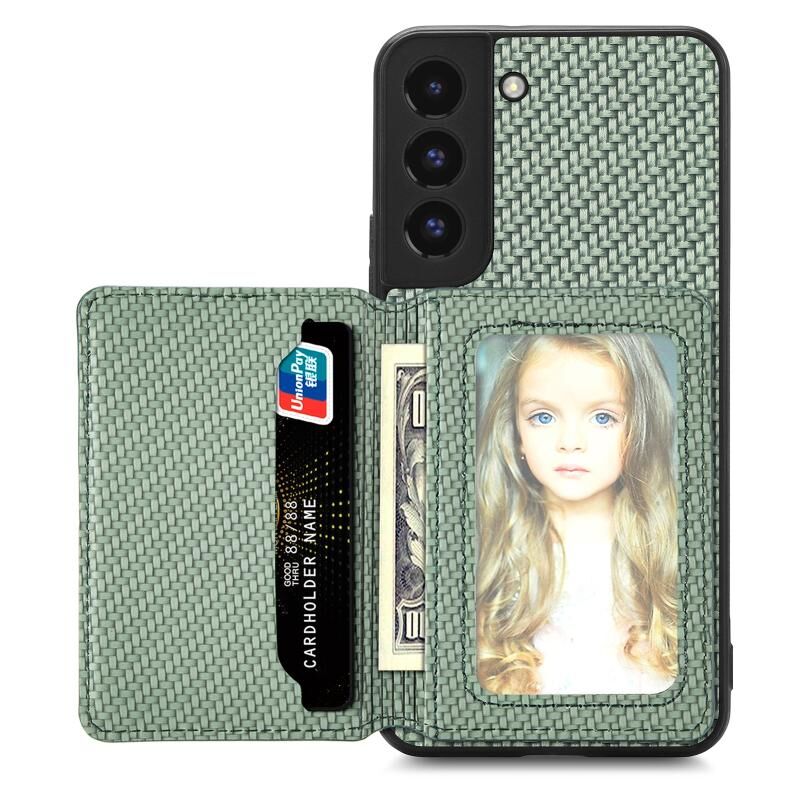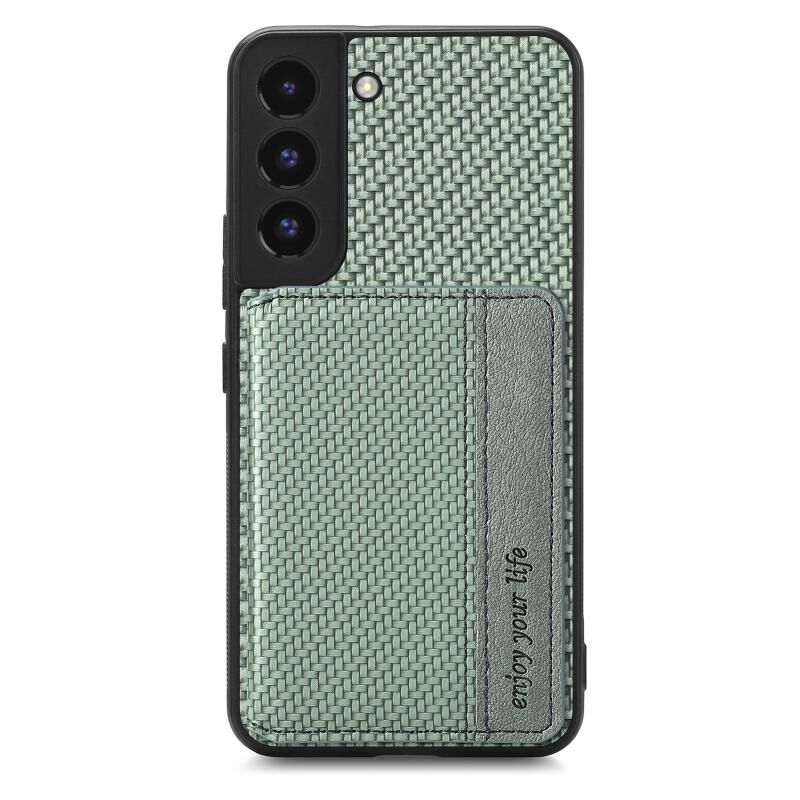 Για Samsung Galaxy S22 + 5G ινών άνθρακα μαγνητική κάρτα πορτοφόλι τσάντα θήκη τηλεφώνου (πράσινο)