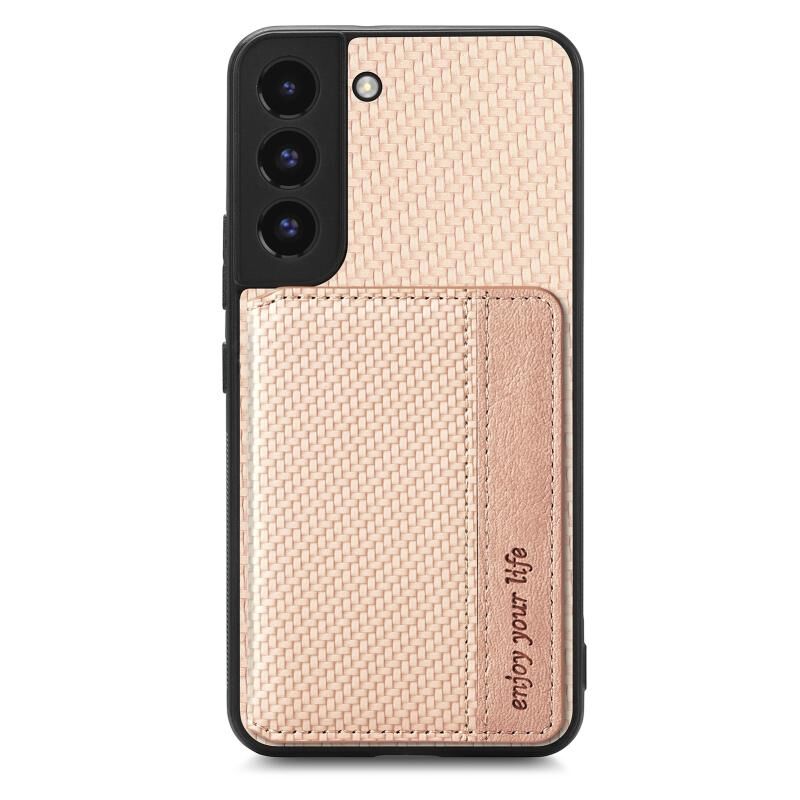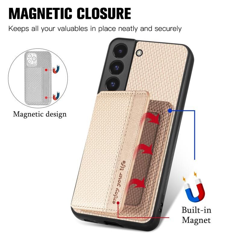 Για Samsung Galaxy S22 5G ινών άνθρακα Μαγνητική κάρτα πορτοφόλι τσάντα πορτοφόλι υπόθεση τηλεφώνου (χακί)