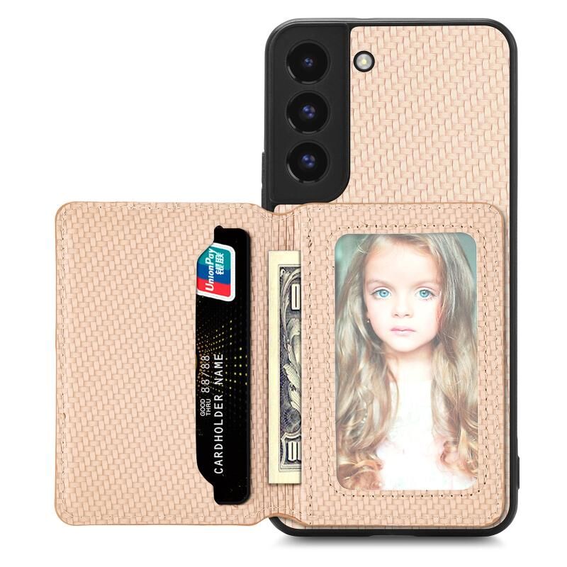 Για Samsung Galaxy S22 + 5G ινών άνθρακα μαγνητική κάρτα πορτοφόλι τσάντα θήκη τηλεφώνου (χακί)