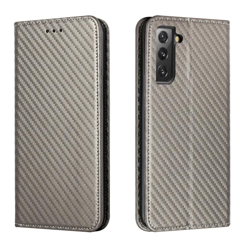 For Samsung Galaxy S22+ 5G Carbon Fiber Texture Flip Holder Leather Phone Case(Grey)