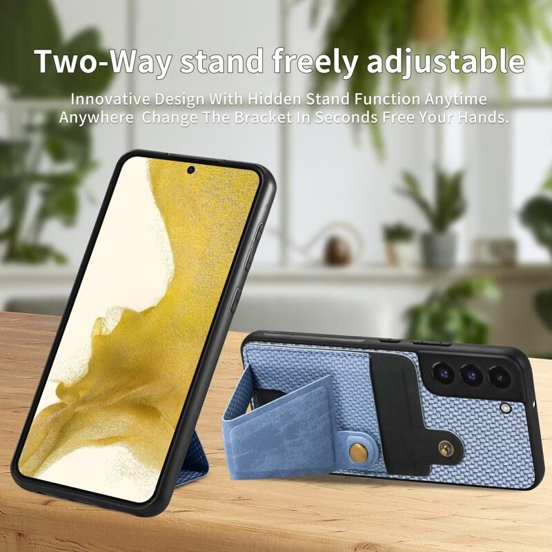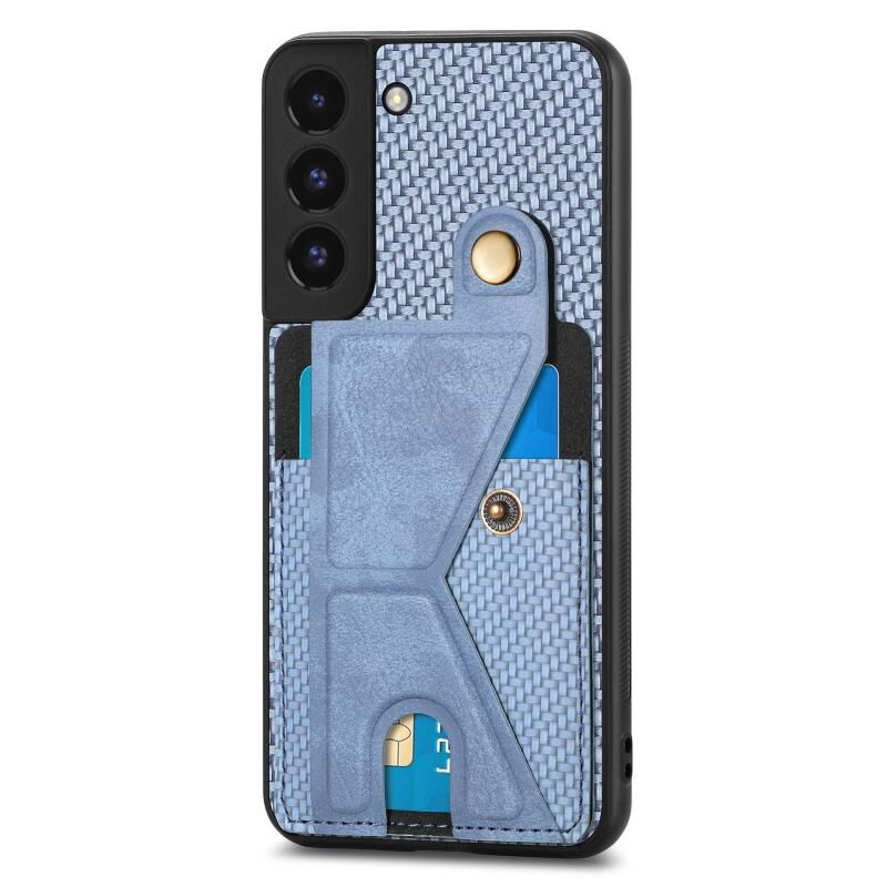 Για Samsung Galaxy S22 + 5G ινών άνθρακα ινών πορτοφόλι Flip κάρτα K-σχήμα κάτοχος θήκη τηλεφώνου (μπλε)