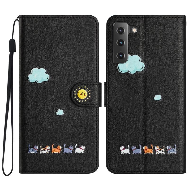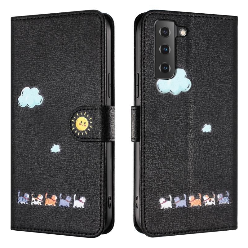 Θήκη τηλεφώνου Samsung Galaxy S22+ 5G από δέρμα με σχέδια χαριτωμένων γατών (Μπλε)