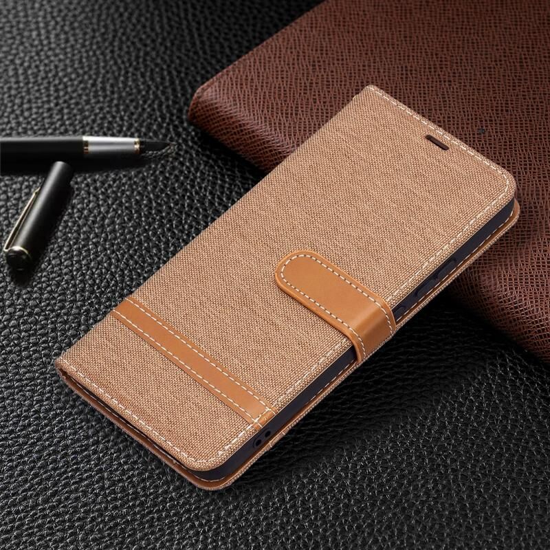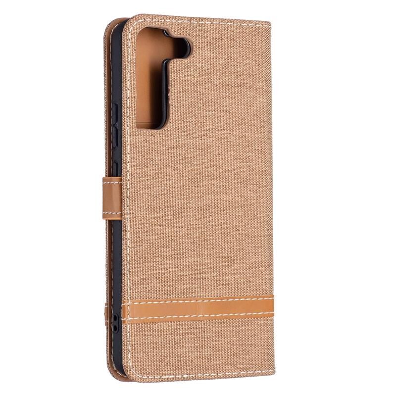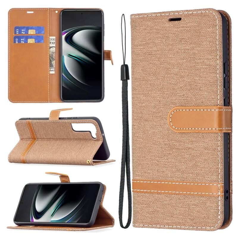 Για Samsung Galaxy S22+ 5G Χρώμα ταιριάζουν Denim Υφή δερμάτινη θήκη με θήκη & υποδοχές για κάρτες & πορτοφόλι & κορδόνι (καφέ)