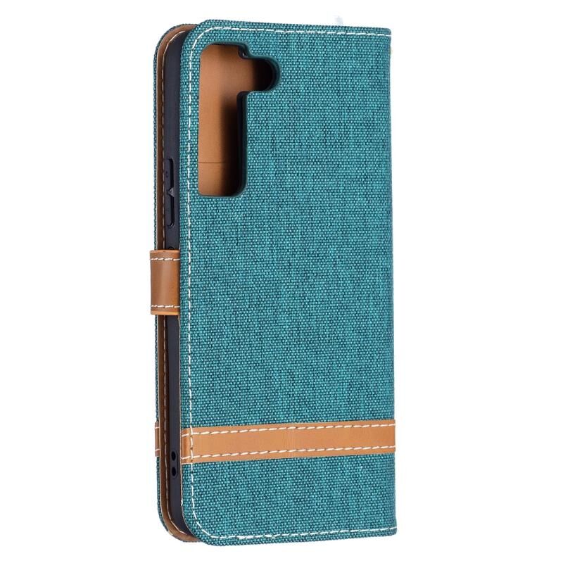 Για Samsung Galaxy S22 5G Χρώμα ταιριάζουν Denim Υφή δερμάτινη θήκη με θήκη & υποδοχές για κάρτες & πορτοφόλι & κορδόνι (πράσινο)