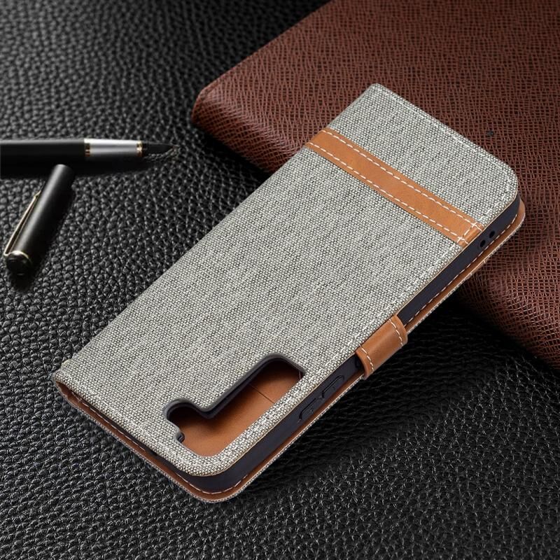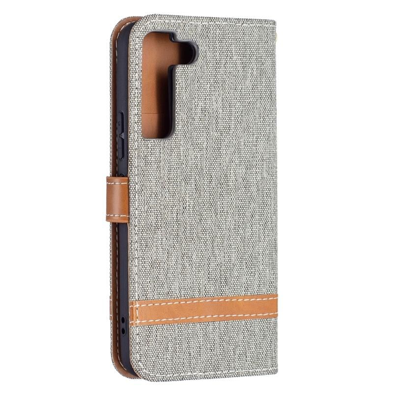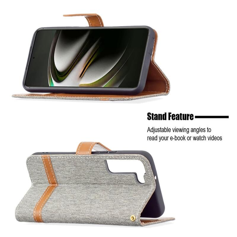 Για Samsung Galaxy S22 5G Χρώμα Matching Denim Υφή δερμάτινη θήκη με θήκη & υποδοχές για κάρτες & πορτοφόλι & κορδόνι (γκρι)