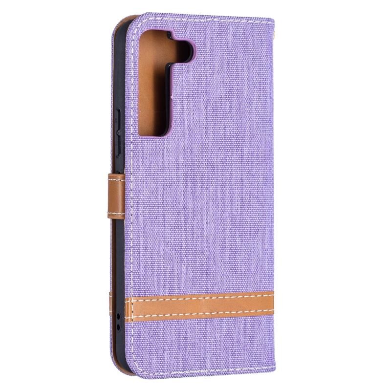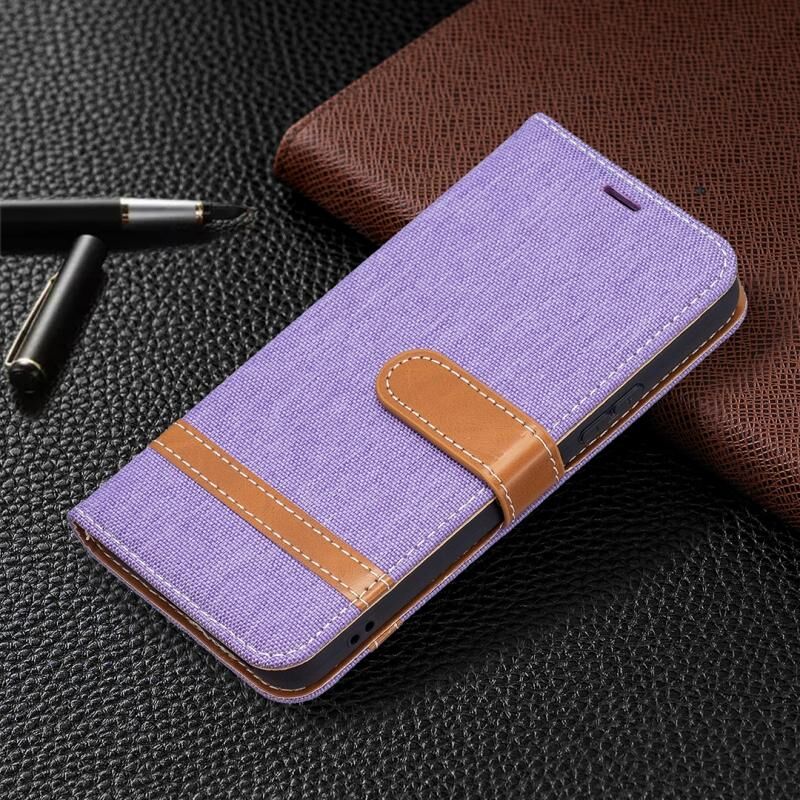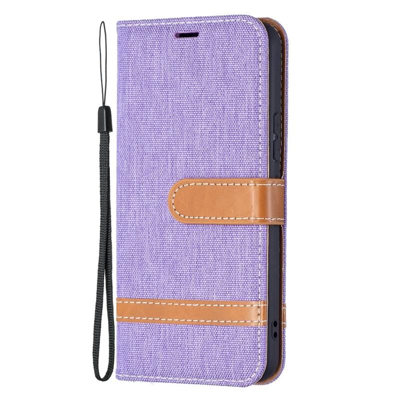 Για Samsung Galaxy S22 5G Χρώμα ταιριάζουν Denim Υφή δερμάτινη θήκη με θήκη & υποδοχές για κάρτες & πορτοφόλι & κορδόνι (μωβ)