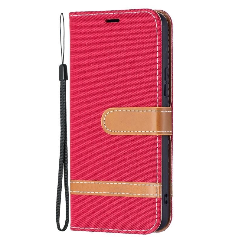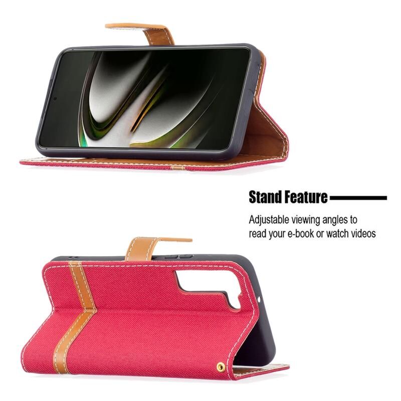 Για Samsung Galaxy S22 5G Χρώμα Matching Denim Υφή δερμάτινη θήκη με θήκη & υποδοχές για κάρτες & πορτοφόλι & κορδόνι (κόκκινο)