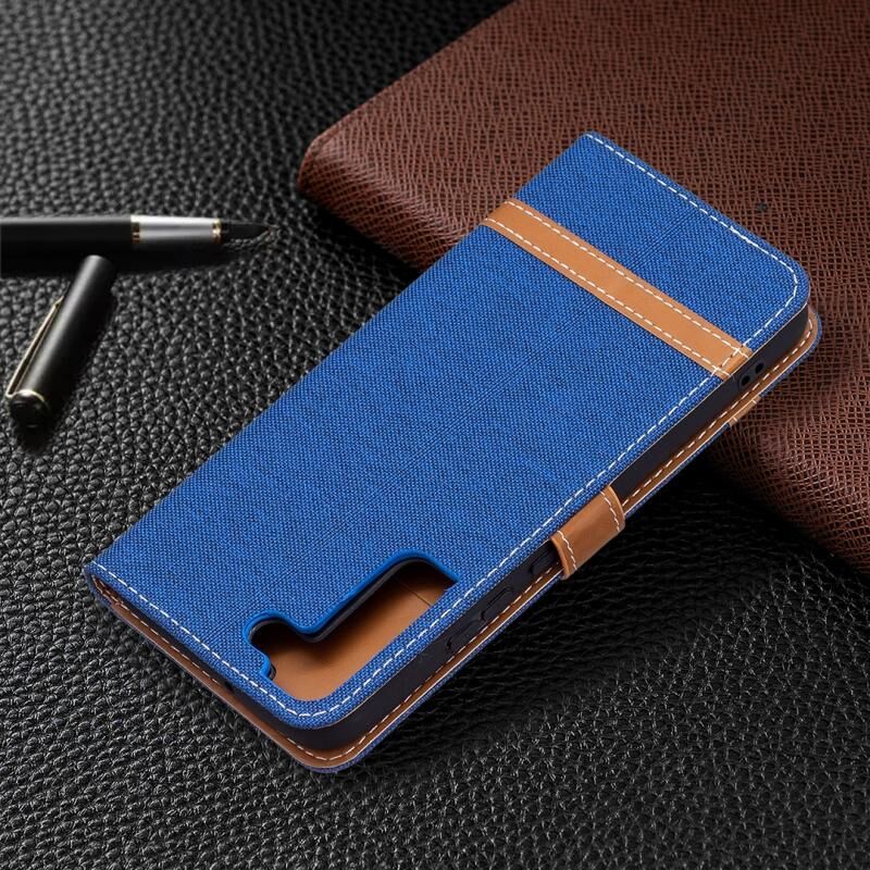 Για Samsung Galaxy S22+ 5G Χρώμα ταιριάζουν Denim Υφή δερμάτινη θήκη με θήκη & υποδοχές για κάρτες & πορτοφόλι & κορδόνι (Royal Blue)