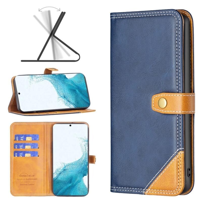 Θήκη τηλεφώνου Samsung Galaxy S22+ 5G από δέρμα με διπλή ραφή και αντιστοίχιση χρώματος (Καφέ)