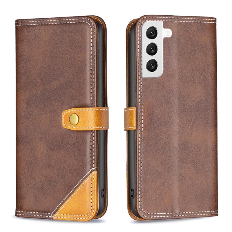 Θήκη τηλεφώνου Samsung Galaxy S22 5G από δέρμα με διπλή ραφή και αντιστοίχιση χρωμάτων (Μαύρο)