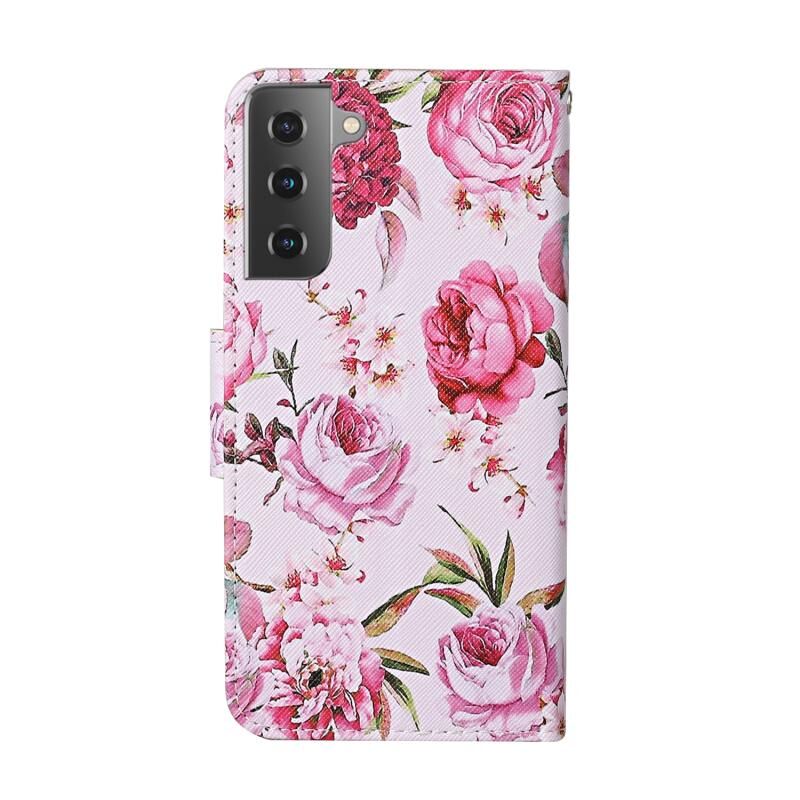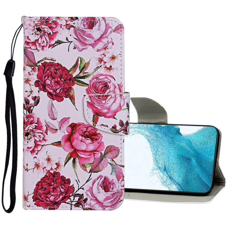 Θήκη δέρματος τύπου flip με σχέδιο ζωγραφικής και χρώματα για Samsung Galaxy S22+ 5G (Παιώνια)