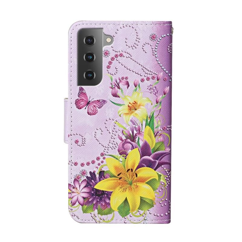 Θήκη δέρματος τύπου flip με πολύχρωμο σχέδιο για Samsung Galaxy S22 5G (Μαύρη Γάτα)