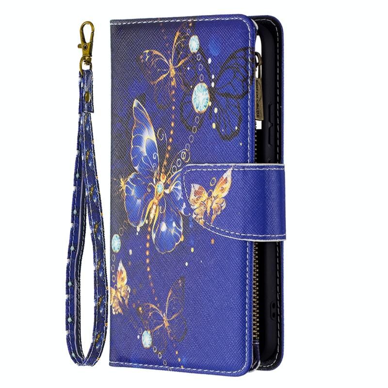 For Samsung Galaxy S22+ 5G Colored Drawing Pattern Zipper Horizontal Flip Phone Leather Case with Holder & Card Slots & Wallet(Purple Butterfly)
