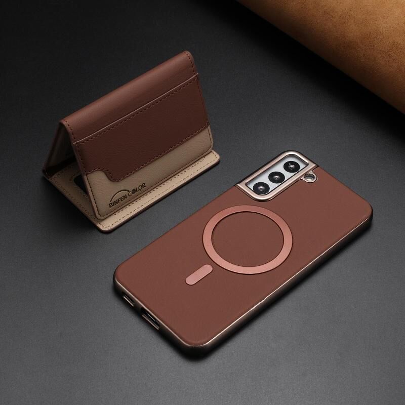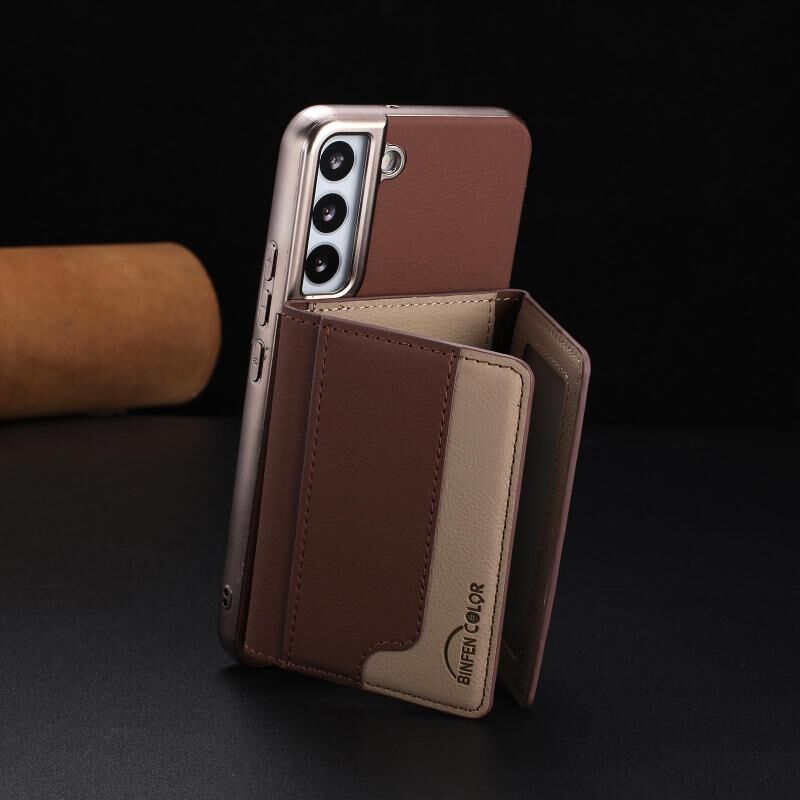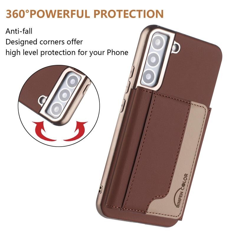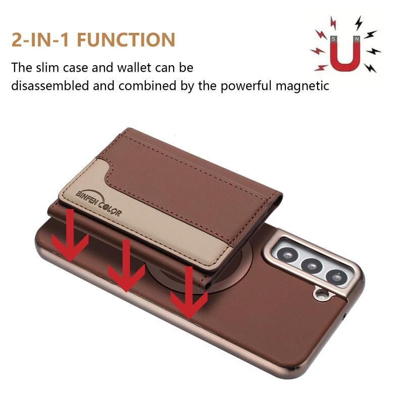 For Samsung Galaxy S22+ 5G Colour Matching Horizontal Magnetic Card Bag RFID MagSafe Phone Case(Brown)