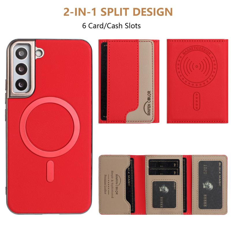 For Samsung Galaxy S22+ 5G Colour Matching Horizontal Magnetic Card Bag RFID MagSafe Phone Case(Red)