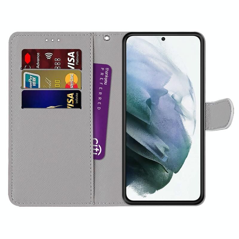 For Samsung Galaxy S22+ 5G Coloured Drawing Cross Texture Horizontal Flip Leather Phone Case with Holder & Card Slots & Wallet & Lanyard(Cat Drinking Soda)