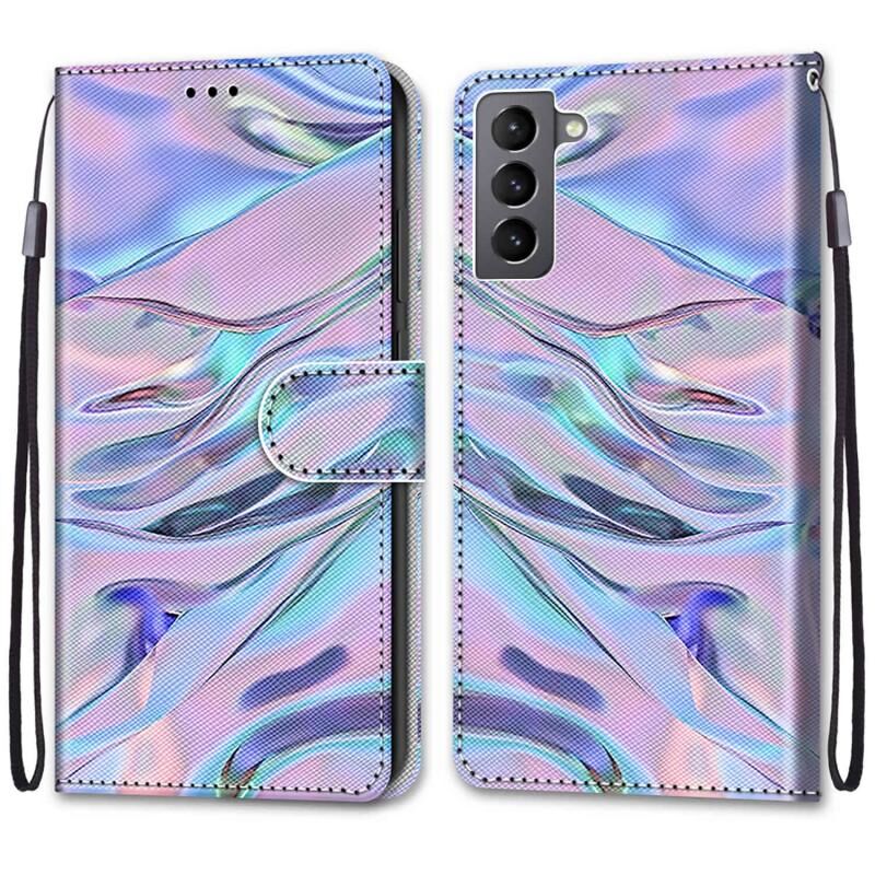 Θήκη τηλεφώνου Samsung Galaxy S22 5G από δέρμα PU με οριζόντιο άνοιγμα, ανάγλυφη υφή, πολύχρωμο σχέδιο (φθορίζον μοτίβο νερού) με βάση για στήριξη, θήκες για κάρτες, πορτοφόλι και κορδόνι. (Κόκκινο)