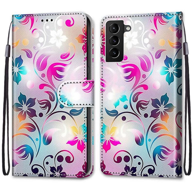 Θήκη τηλεφώνου Samsung Galaxy S22+ 5G από δέρμα PU με οριζόντιο άνοιγμα, πολύχρωμη σχεδίαση με υφή σταυρού, με βάση, θήκες καρτών, πορτοφόλι και κορδόνι (Πολύχρωμο στρώμα (διαβαθμισμένο πολύχρωμο λουλούδι))
