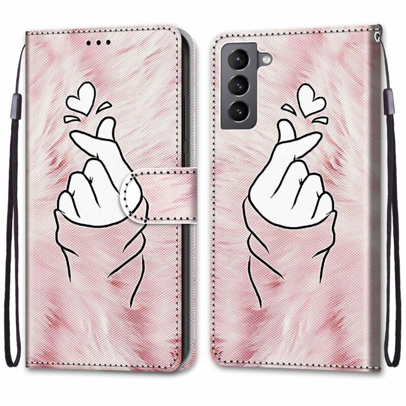 Θήκη τηλεφώνου Samsung Galaxy S22 5G από δέρμα PU με οριζόντιο άνοιγμα, πολύχρωμη σχεδίαση με σταυρωτή υφή, με βάση, θήκες καρτών, πορτοφόλι και κορδόνι (Πολύχρωμο στρώμα (Ροζ Πράσινες Βελόνες))