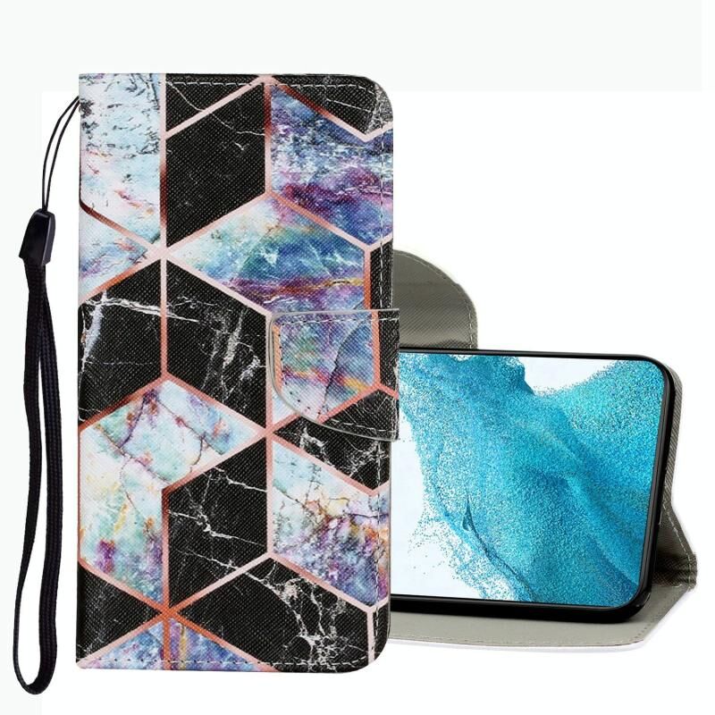 Θήκη τηλεφώνου δερμάτινη με σχέδιο πολύχρωμης ζωγραφικής για Samsung Galaxy S22+ 5G (Μαύρο Μάρμαρο)