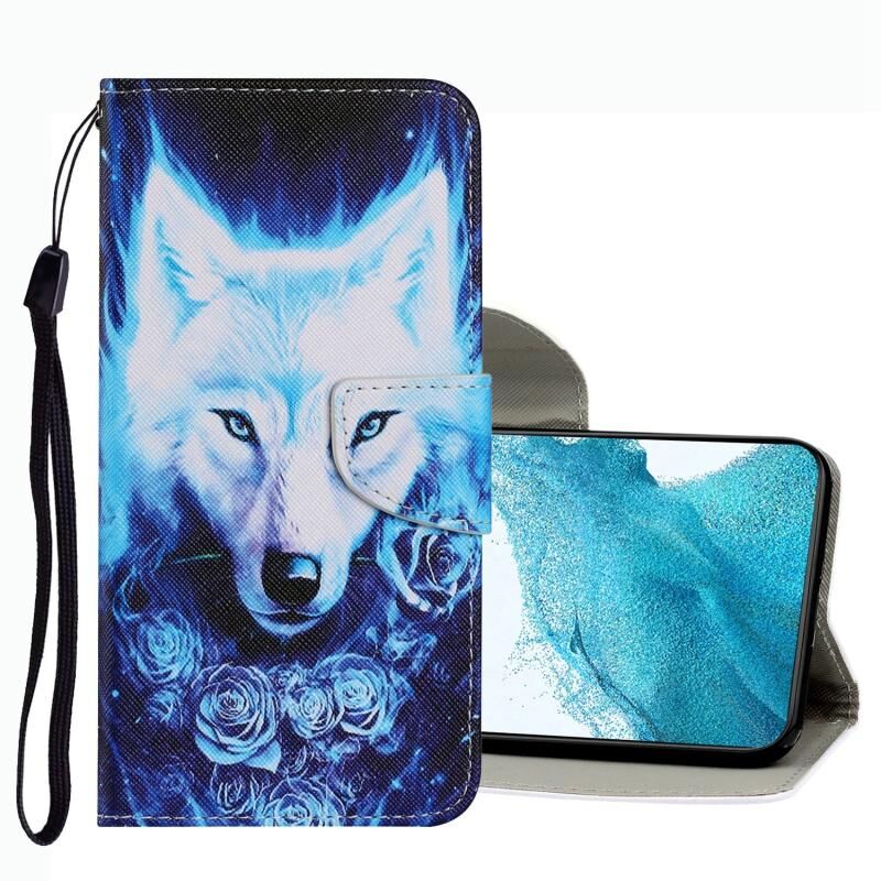 Θήκη τηλεφώνου Samsung Galaxy S22 5G από δέρμα με πολύχρωμο σχέδιο (Rose Wolf)