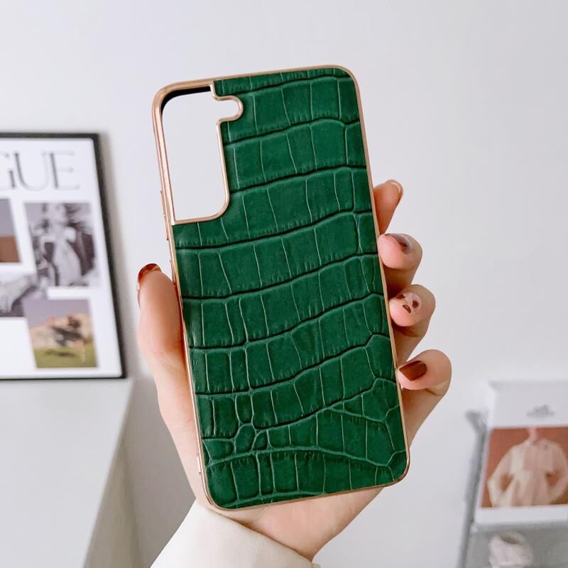Θήκη τηλεφώνου Samsung Galaxy S22+ 5G με γνήσιο δέρμα υφής κροκόδειλου και ηλεκτρολυτική επίστρωση (Σκούρο Πράσινο)