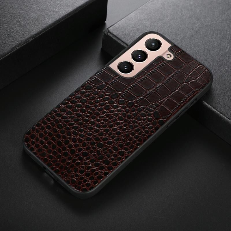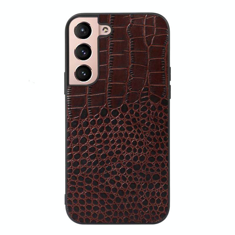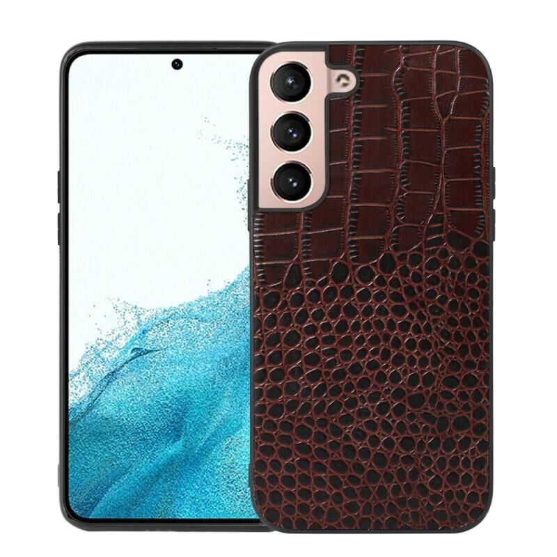 For Samsung Galaxy S22 5G Crocodile Top Layer Cowhide Leather Phone Case(Coffee)