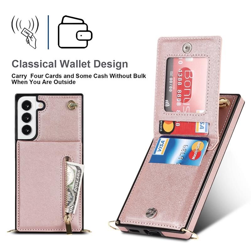 Για Samsung Galaxy S22 5G Cross-body τετράγωνο φερμουάρ κάτοχος κάρτας τσάντα τηλέφωνο υπόθεση (Rose Gold)