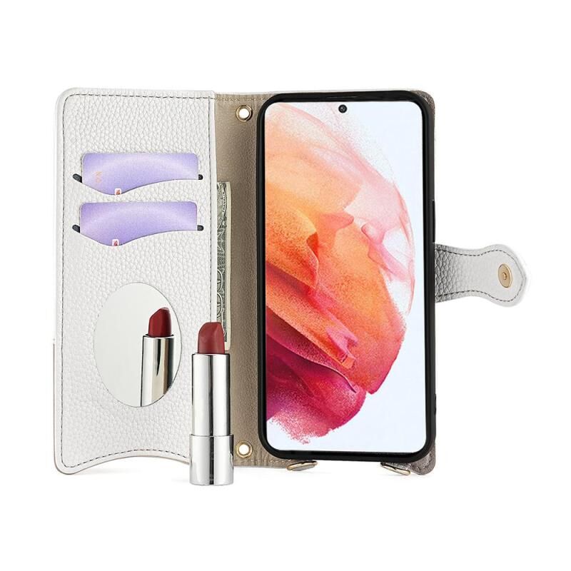 7. Ενσωματωμένος οβάλ καθρέφτης μακιγιάζ από ανοξείδωτο χάλυβα: Ένας ανθεκτικός, ανθεκτικός στις γρατσουνιές οβάλ καθρέφτης στο εσωτερικό της θήκης του τηλεφώνου για εύκολο φρεσκάρισμα του μακιγιάζ εν κινήσει.