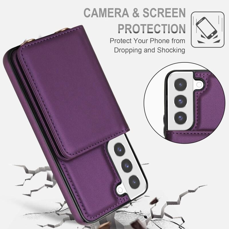 For Samsung Galaxy S22 5G Crossbody Dual-buckle Wallet RFID Back Leather Phone Case(Dark Purple)