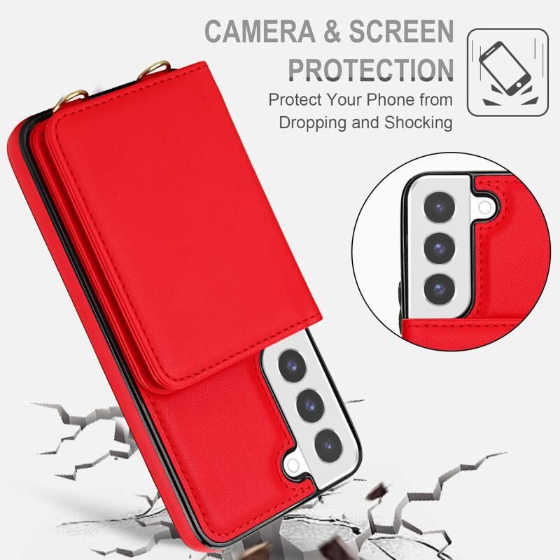 For Samsung Galaxy S22 5G Crossbody Dual-buckle Wallet RFID Back Leather Phone Case(Red)