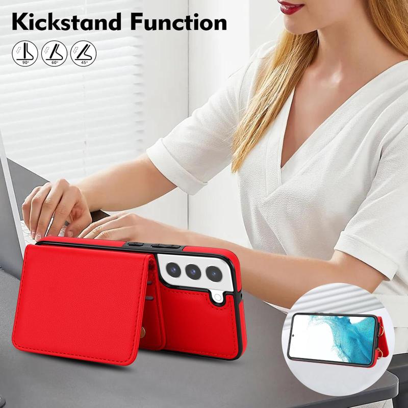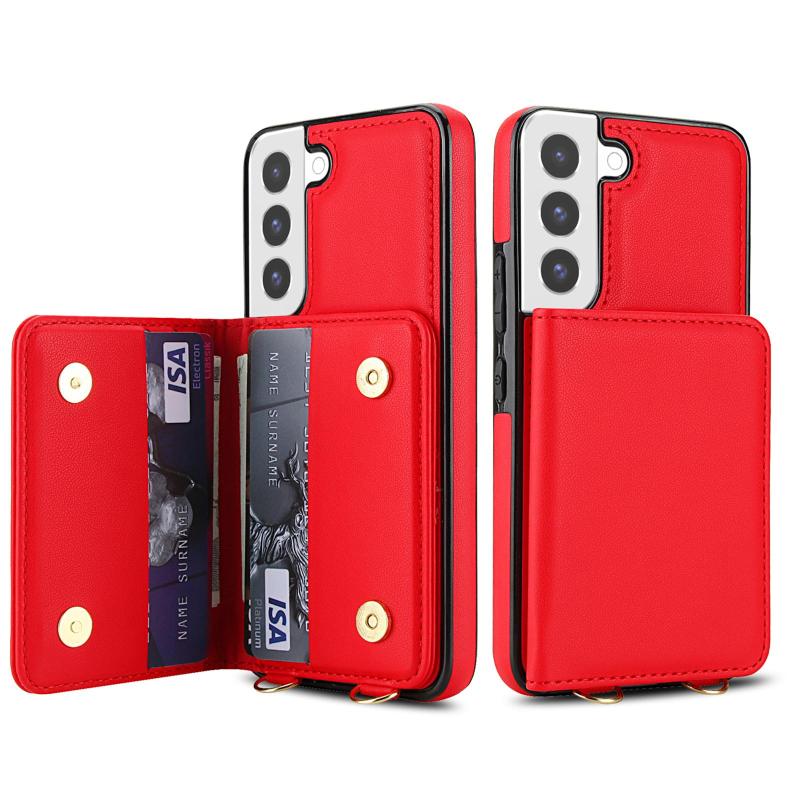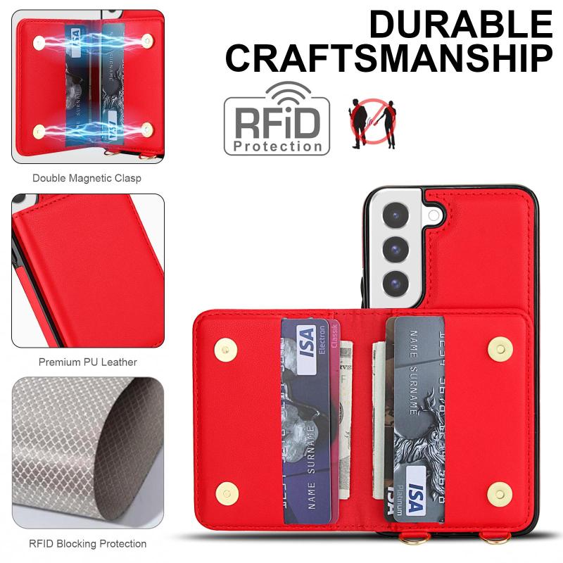 For Samsung Galaxy S22+ 5G Crossbody Dual-buckle Wallet RFID Back Leather Phone Case(Red)