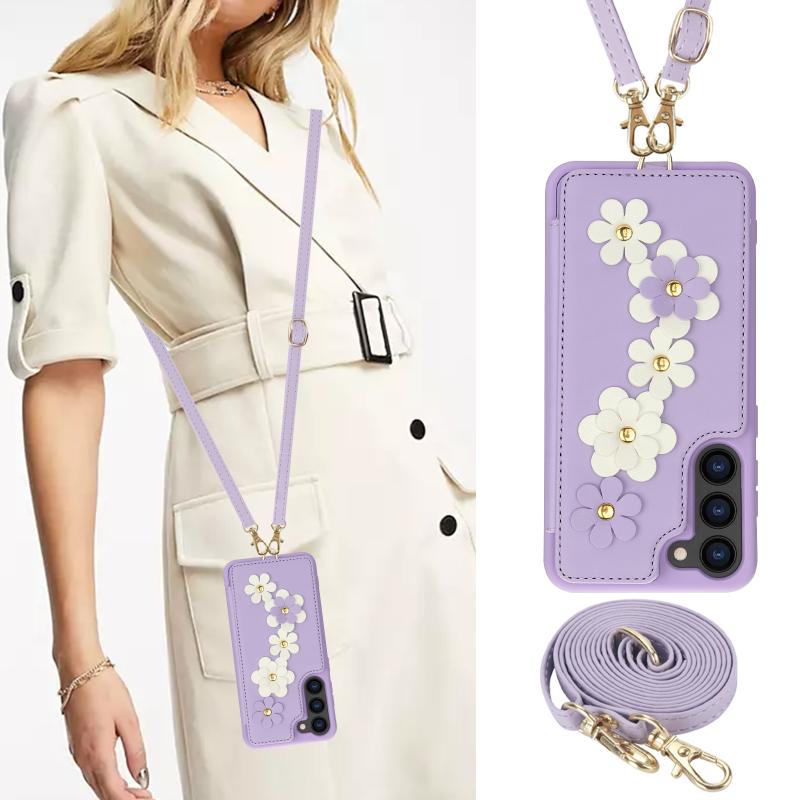For Samsung Galaxy S22+ 5G Crossbody Flower Pattern Leather Phone Case(Purple)