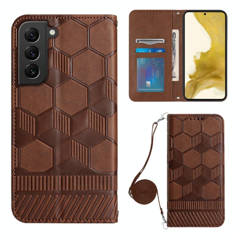 For Samsung Galaxy S22 5G Crossbody Football Texture Magnetic PU Phone Case(Brown)