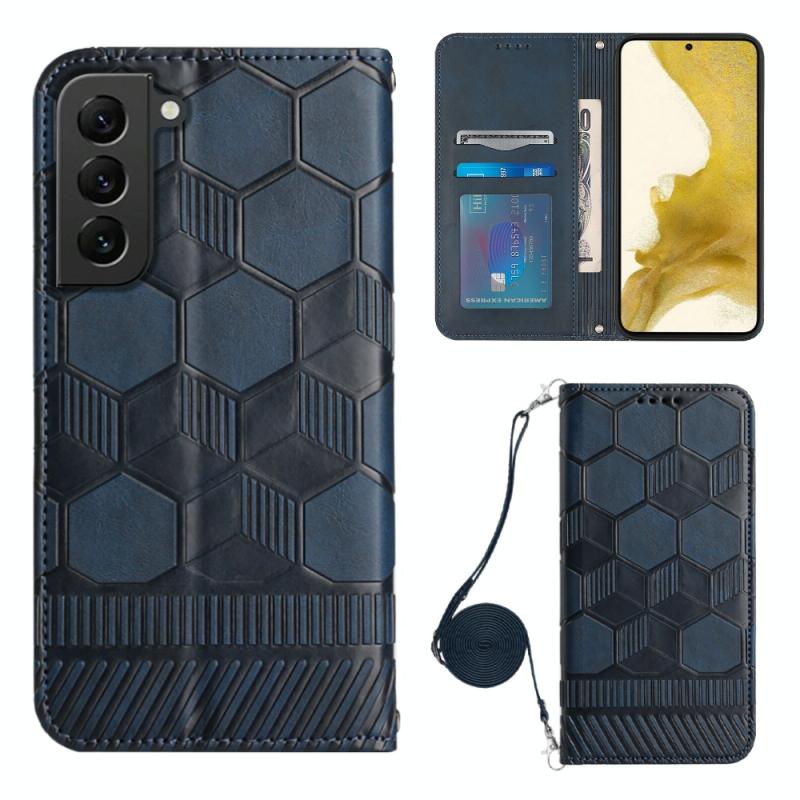For Samsung Galaxy S22 5G Crossbody Football Texture Magnetic PU Phone Case(Dark Blue)