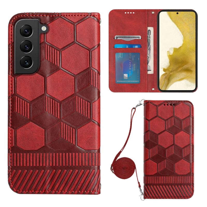For Samsung Galaxy S22+ 5G Crossbody Football Texture Magnetic PU Phone Case(Red)