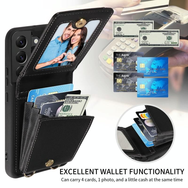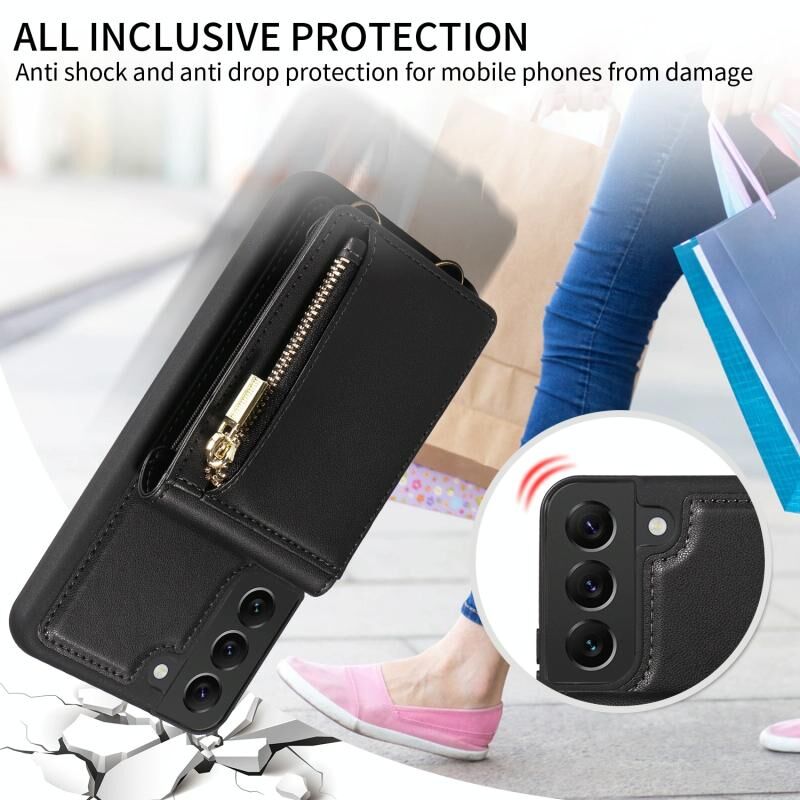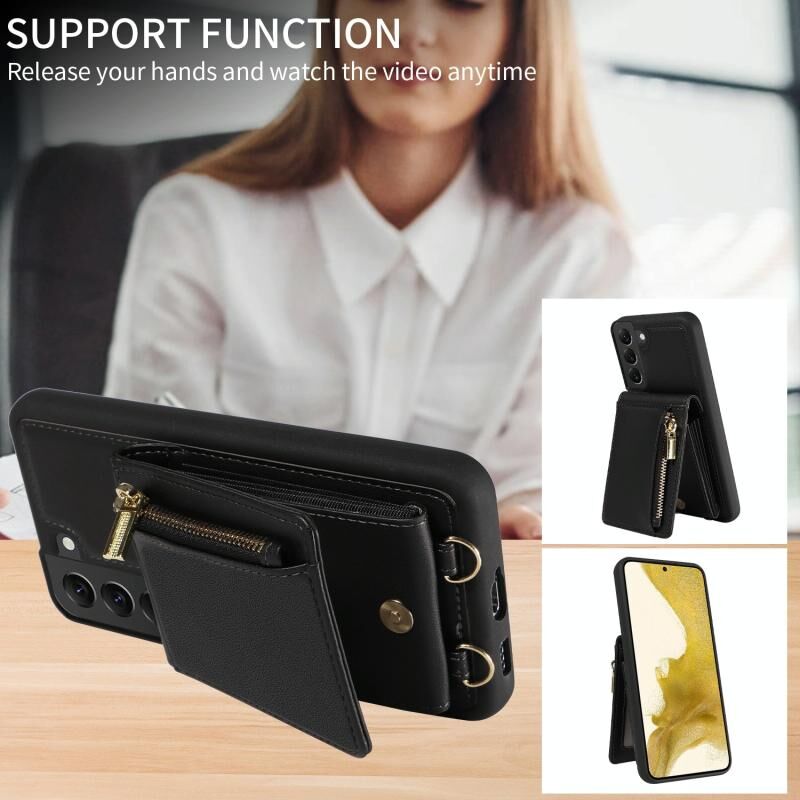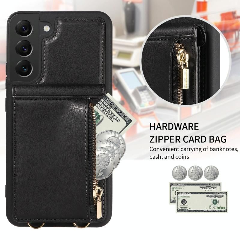 Για Samsung Galaxy S22 + 5G Crossbody Lanyard φερμουάρ πορτοφόλι δερμάτινη θήκη τηλεφώνου (μαύρο)