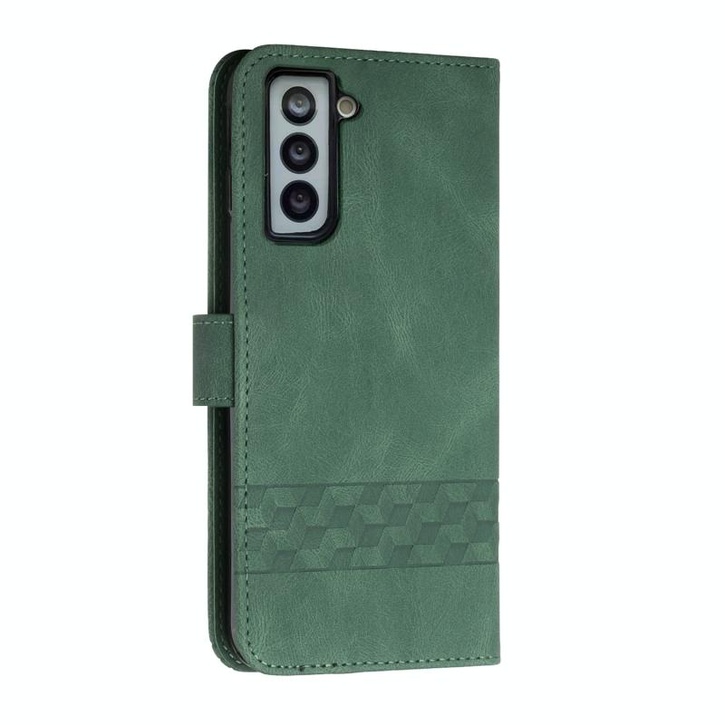 For Samsung Galaxy S22 5G Cubic Skin Feel Flip Leather Phone Case(Dark Green)