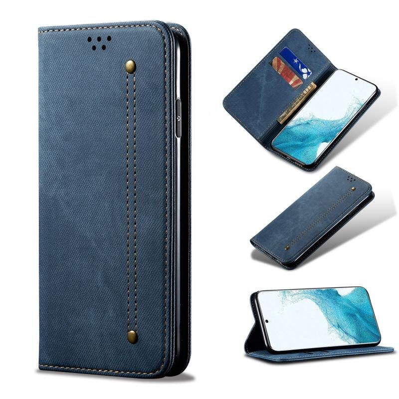 Για το Samsung Galaxy S22+ 5G Denim Texture Casual Style Οριζόντια Flip δερμάτινη θήκη με θήκη & υποδοχές για κάρτες & πορτοφόλι (μπλε)