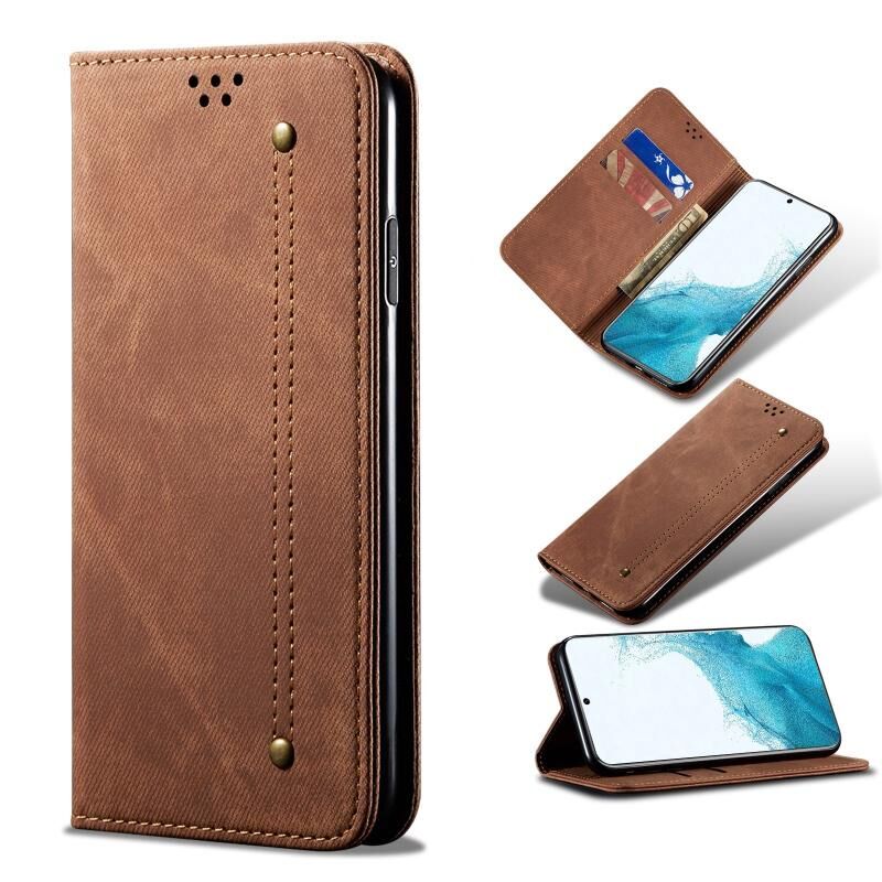 Για το Samsung Galaxy S22+ 5G Denim Texture Casual Style Οριζόντια Flip δερμάτινη θήκη με θήκη & υποδοχές για κάρτες & πορτοφόλι (καφέ)