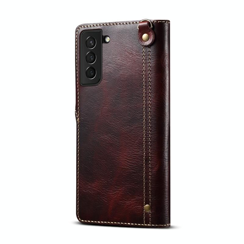 Θήκη για Samsung Galaxy S22+ 5G από γνήσιο δέρμα αγελάδας με κερί λαδιού Denior, με μαγνητικό κούμπωμα (Κόκκινο σκούρο) (Denior)