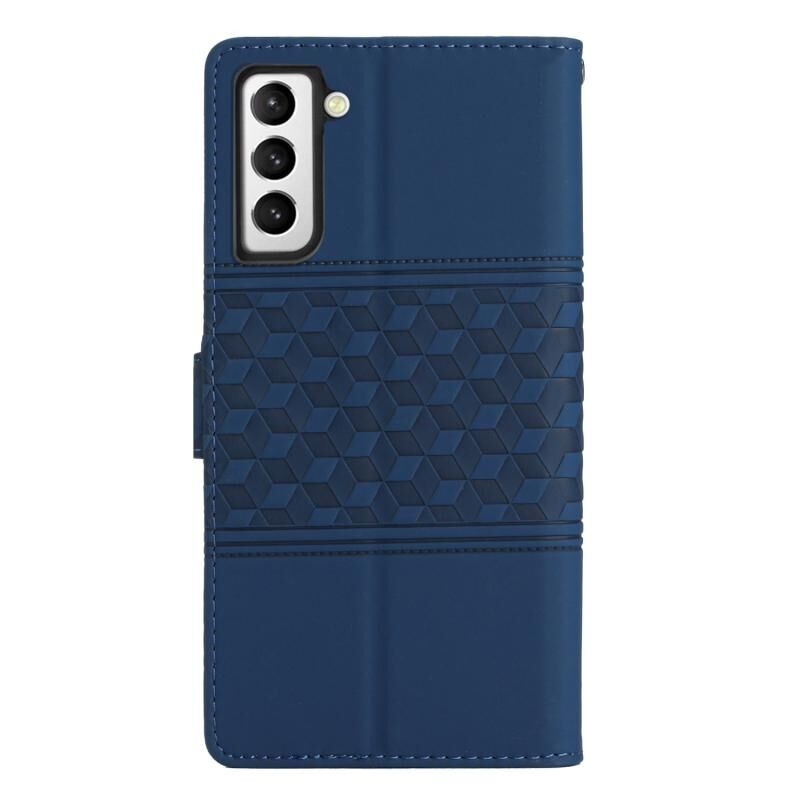 Για Samsung Galaxy S22 5G Diamond ανάγλυφο δέρμα αίσθηση δερμάτινη θήκη τηλεφώνου με κορδόνι (σκούρο μπλε)
