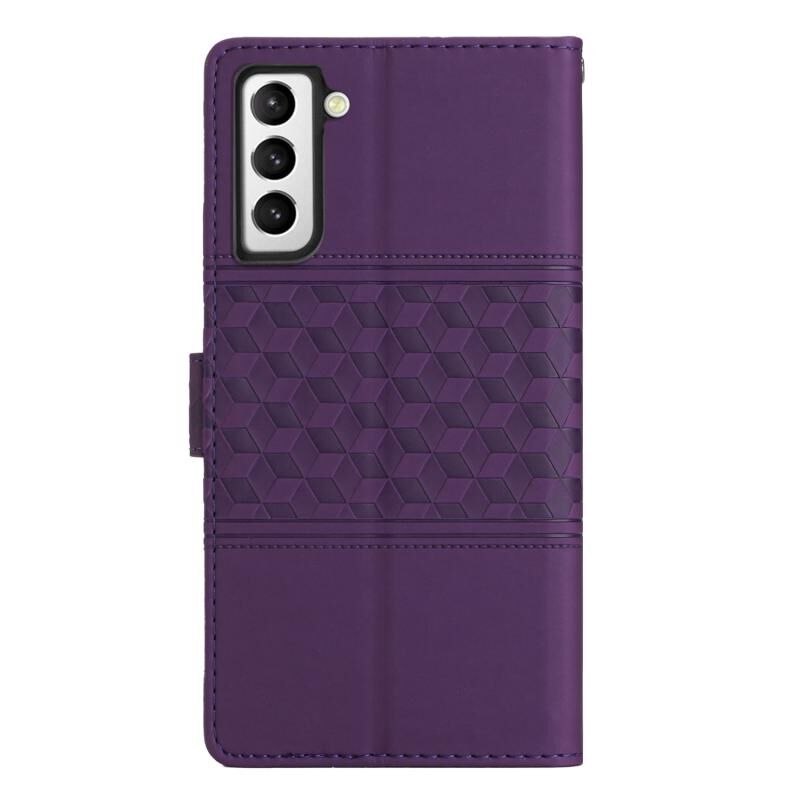 Για Samsung Galaxy S22 5G Diamond ανάγλυφο δέρμα αίσθηση δέρμα τηλέφωνο υπόθεση με κορδόνι (μωβ)