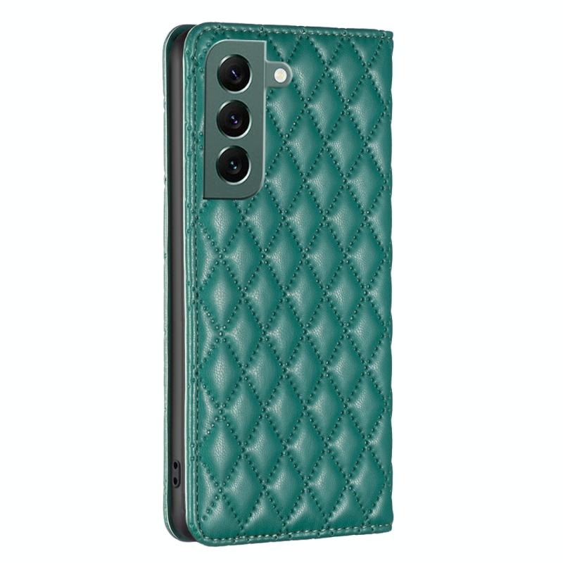 Θήκη τηλεφώνου Samsung Galaxy S22+ 5G, Δερμάτινη, Πτυσσόμενη, Μαγνητική, με σχέδιο διαμαντοειδούς πλέγματος (Μαύρο)