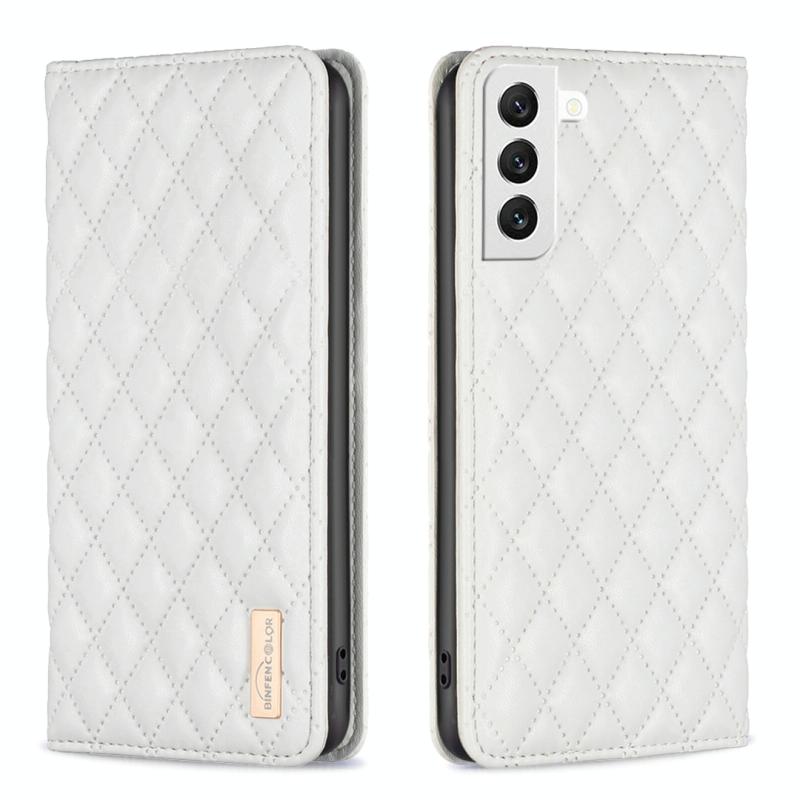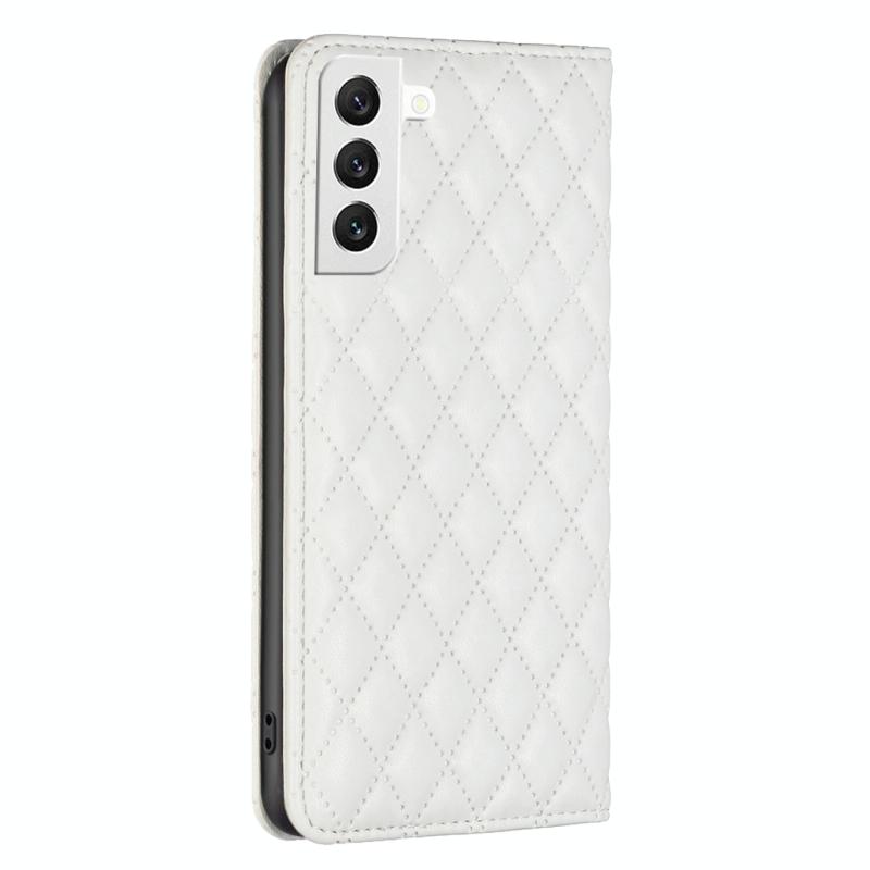 Θήκη τηλεφώνου Samsung Galaxy S22 5G, Δερμάτινη, Πτυσσόμενη, Μαγνητική, με σχέδιο Διαμαντόπλεγμα (Λευκό)