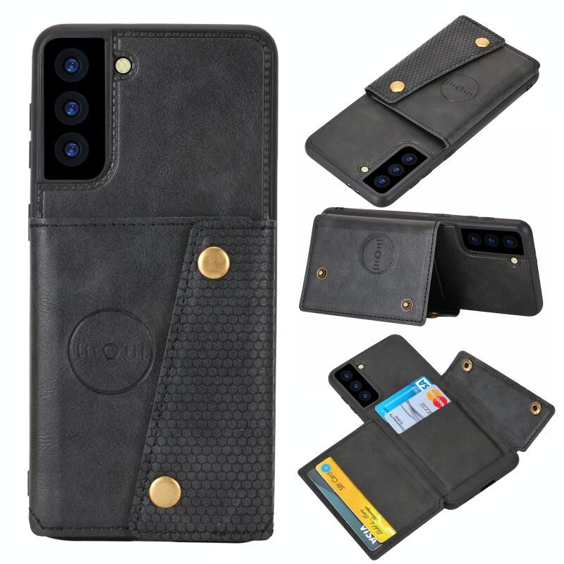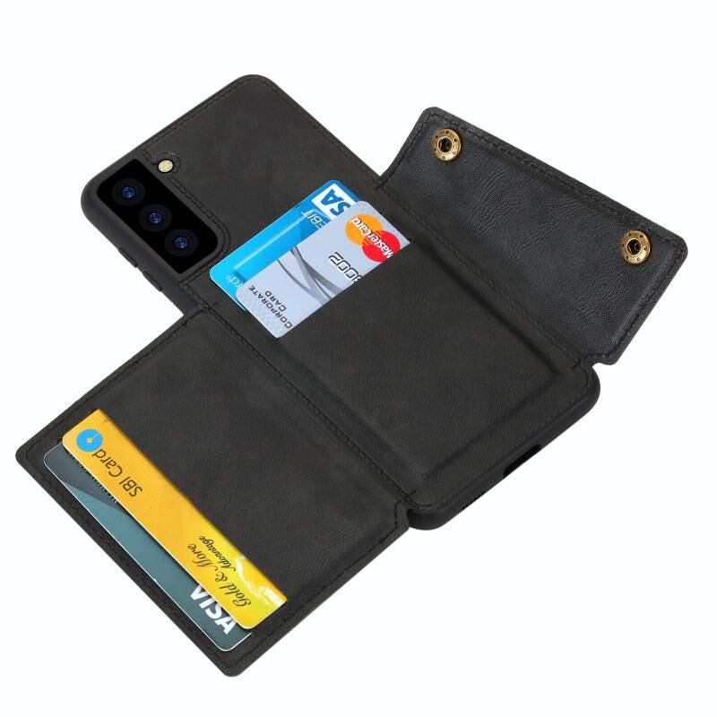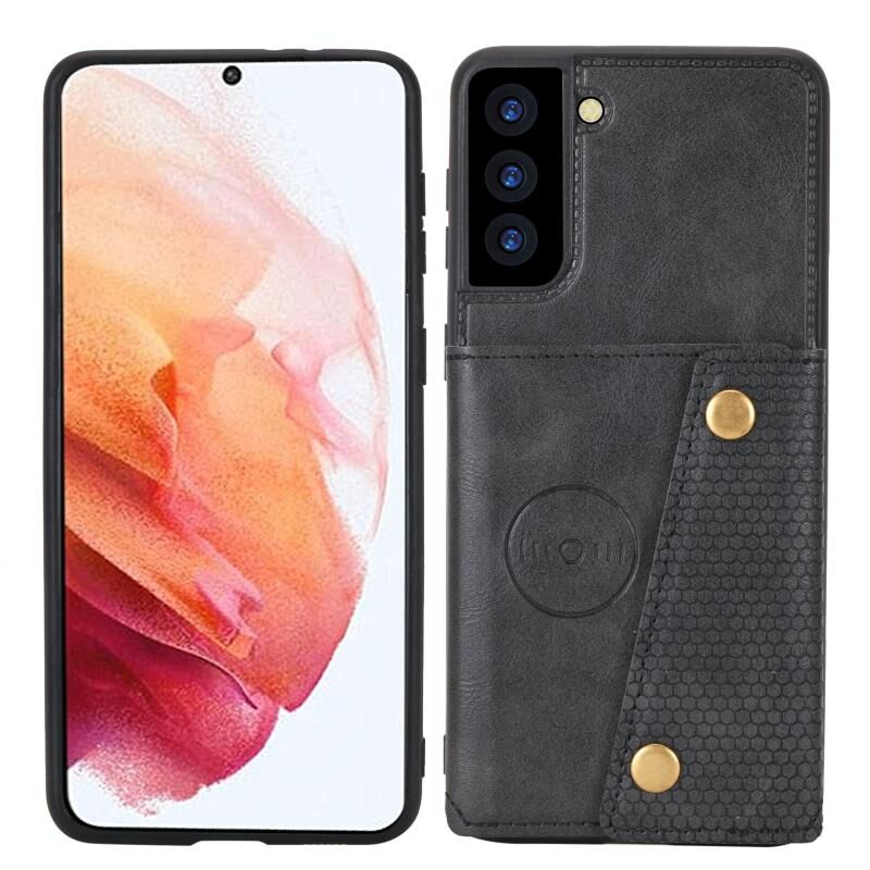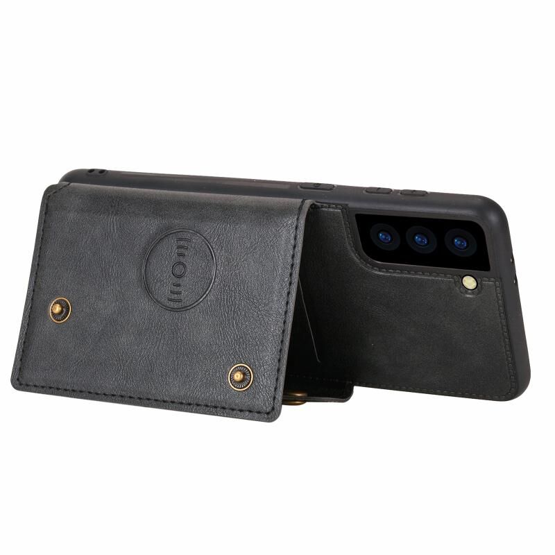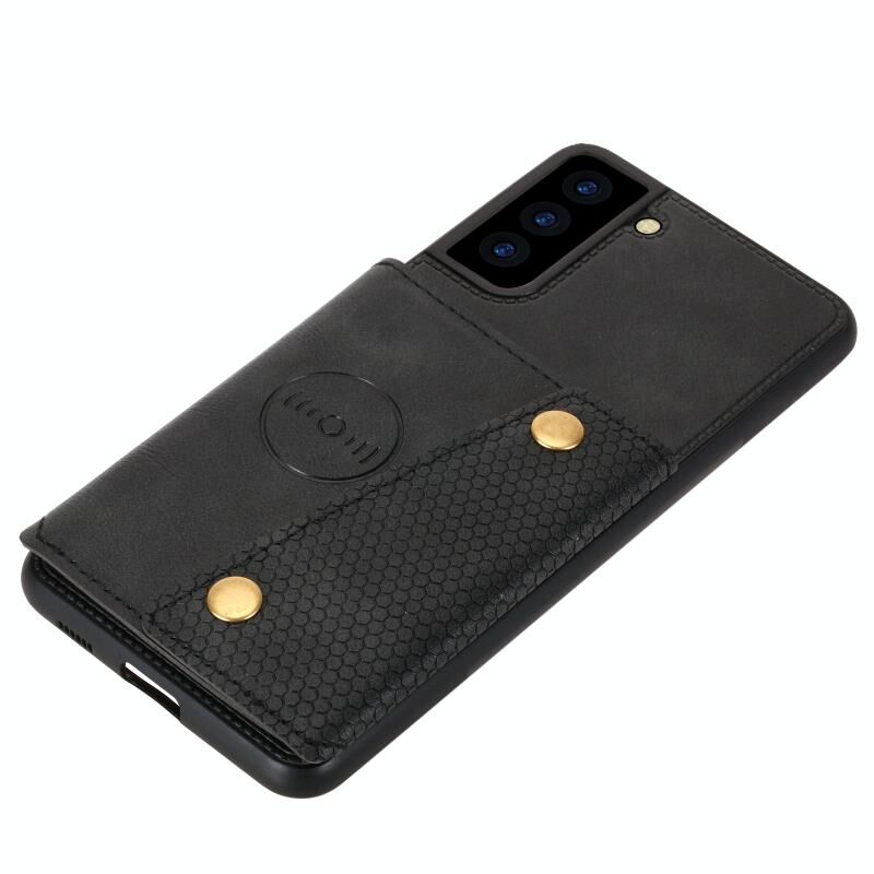 Για Samsung Galaxy S22 5G Διπλή πόρπη PU + TPU μαγνητική θήκη τηλεφώνου (Μαύρο)