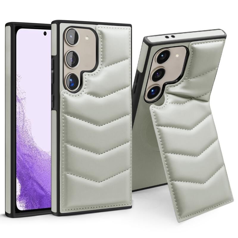 For Samsung Galaxy S22 5G Down Jacket Card Bag Holder MagSafe Phone Case(Grey)