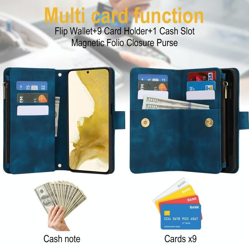 2. Λειτουργία πορτοφολιού πολλαπλών καρτών: 9 υποδοχές για κάρτες και 1 θήκη μετρητών με φερμουάρ για να αποθηκεύετε τις πιστωτικές σας κάρτες, μετρητά ή μικρά χαρτονομίσματα για τις καθημερινές σας ανάγκες.