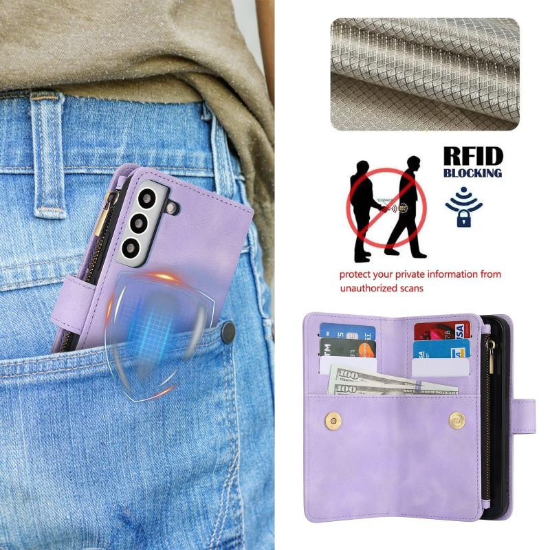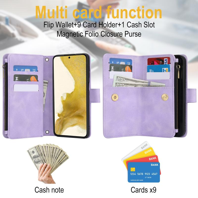 2. Multi-card wallet function: 9 card slots and 1 cash compartment with zipper to store your credit cards, cash or small banknotes for daily needs.