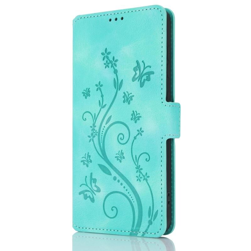 Θήκη τηλεφώνου Samsung Galaxy S22+ 5G από δέρμα με ανάγλυφο σχέδιο πεταλούδας, λουλουδιών και ονειρικό μοτίβο (Μωβ)